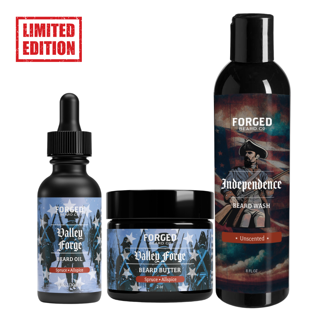 At Forged Beard Co., we believe a man's beard is more than just facial hair - it's a symbol of strength, honor, and identity. Just like America - who was Forged through strength, courage, perseverance, and resilience - we believe a man's character and his beard are quite similar. That's why we craft our products with premium natural ingredients and essential oils, using intentionally crafted formulas to help with your beard be as healthy and strong as possible. Proudly made for those who stand strong in their values and demand excellence. We desire to provide patriotic beardsmen like you the tools to help you along your beard journey so you can have the beard you've always wanted, and to be confidently bearded, build community, and help men simply be better.