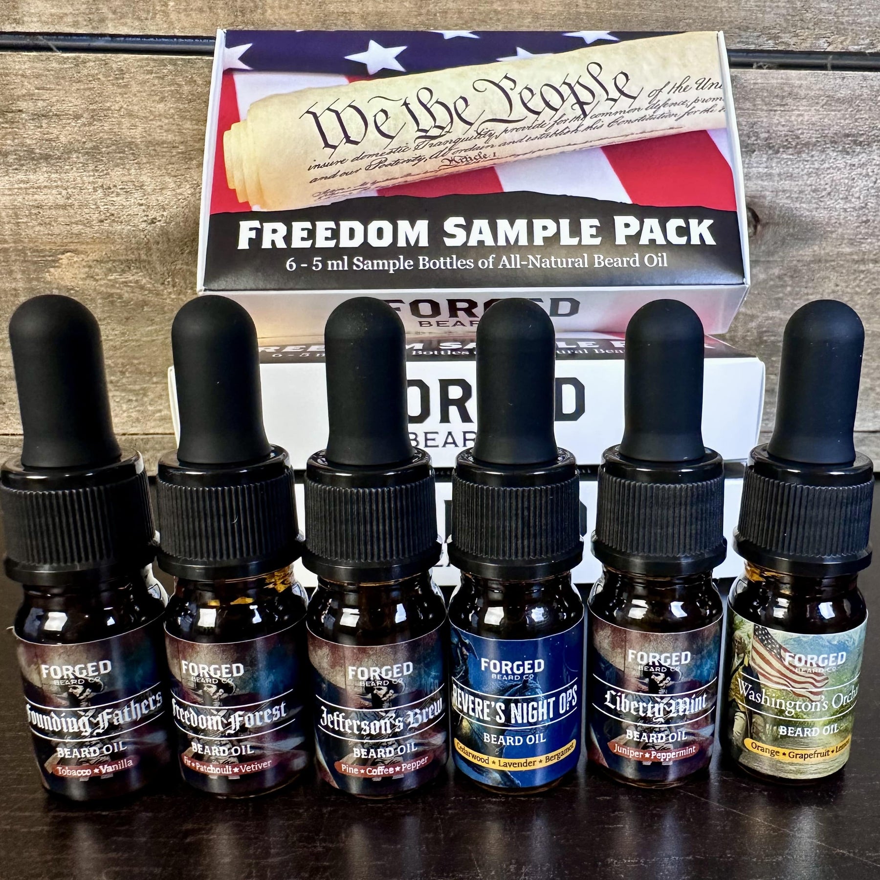 If you're new to the Forged brand, maybe you're already a fan and are looking to try our full signature line, or you're looking for a gift - our Freedom Sample Pack of all-natural, essential oil based beard oils is perfect for you!